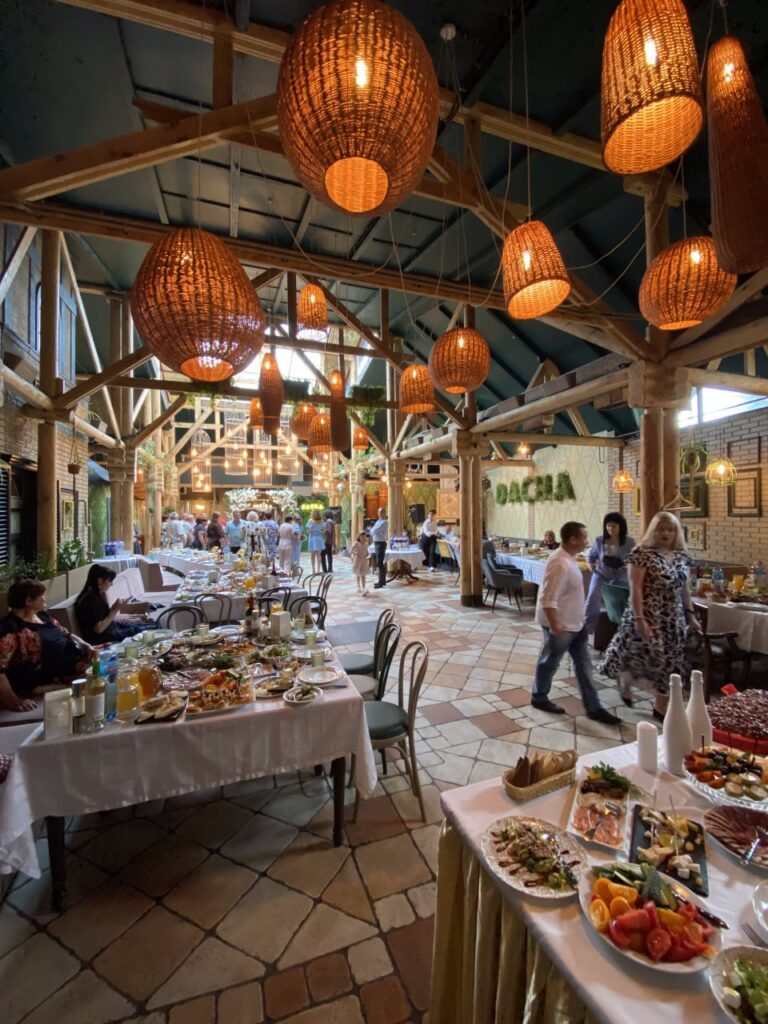 Маленькі гості весілля теж не будуть нудьгувати, адже для них є спеціальна дитяча кімната, де вони зможуть активно та з користю провести час. Ми пропонуємо живий звук від чудових вокалісток та запалювальну атмосферу від драйвового DJ, караоке зал, а також зал для танців та весільних конкурсів у нашому ресторані, щоб кожен зміг сповна насолодитися прекрасними моментами. Якщо ви хочете вишуканий весільний банкетний зал, веселе святкування та приємну атмосферу – ми з радістю чекаємо на вас у ресторані DACHA.